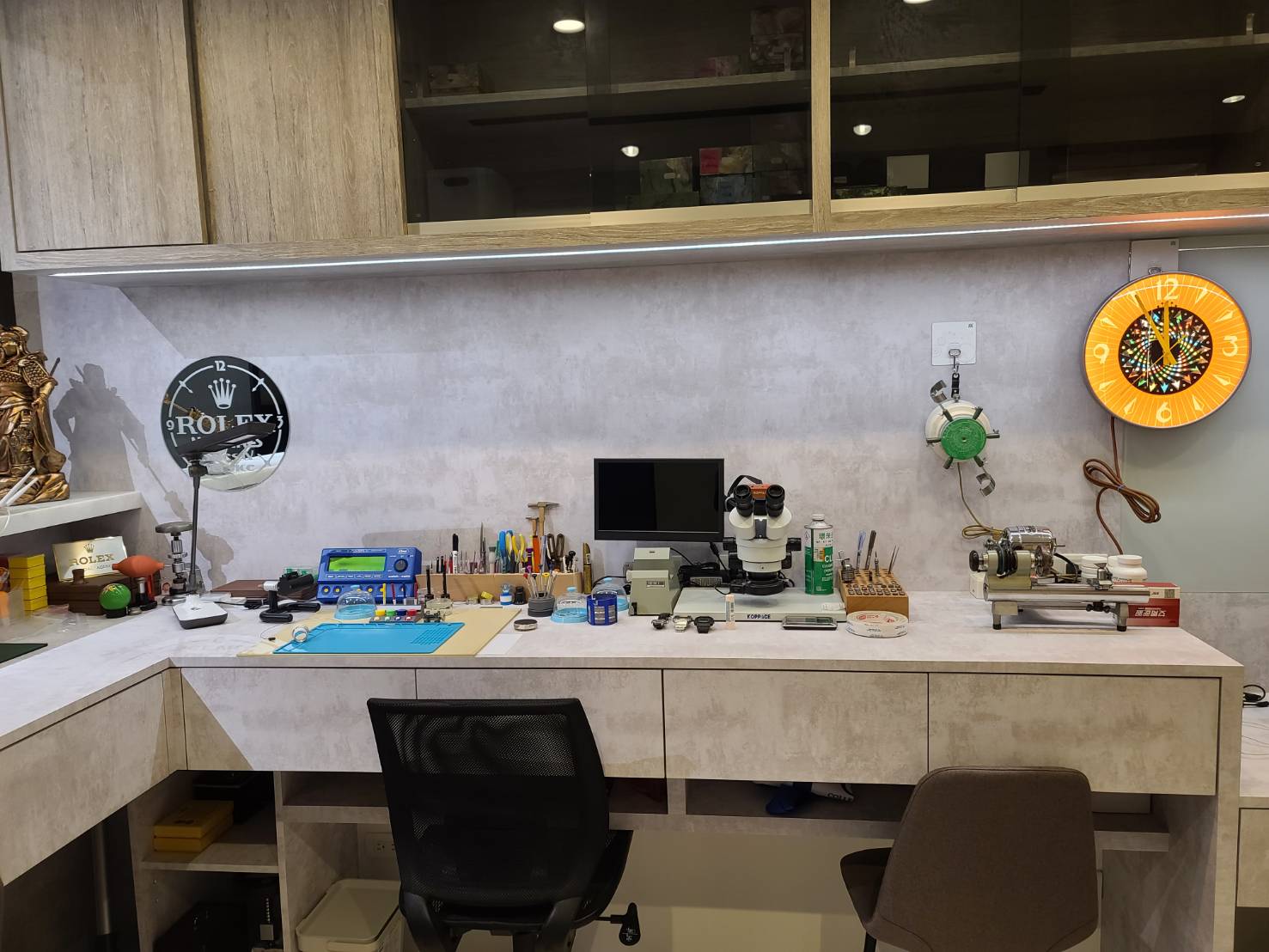 長久以來,喜歡古董錶,喜歡這些老東西,喜歡享受老錶回春的感動與尋覓經典老勞的過程... 這幾年陸續的買了不少相關老件老物,終於在疫情這一年能夠有時間慢慢的裝修修繕,弄了片小天地來自餘能專心的修繕,也讓這些老東西收藏能有個專門的地方擺放( ROLEX各年代的一些老件老工具,老鏡子,display.... 為主 )